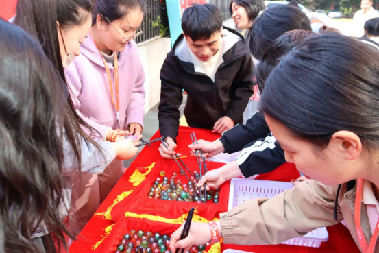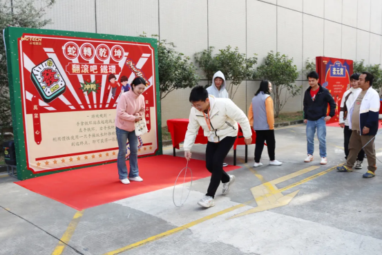 除了美食,游园会还设置了一系列精彩的游戏摊位。在“’蛇’”转乾坤”游戏摊位,参与者引领着铁环在欢声笑语中穿梭,每一次平稳的滚动都引来阵阵喝彩,唤起了无数人童年的美好回忆。