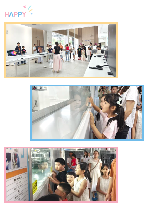 上午9点,园区参观环节正式开始。在工作人员的引导下,亲子家庭分成小组,有序走进展厅、生产车间等参观区域。孩子们好奇地通过参观窗口观察着精密的仪器设备,不时提出天真的问题,讲解员耐心讲解,同时向孩子讲述公司的产品和发展故事。